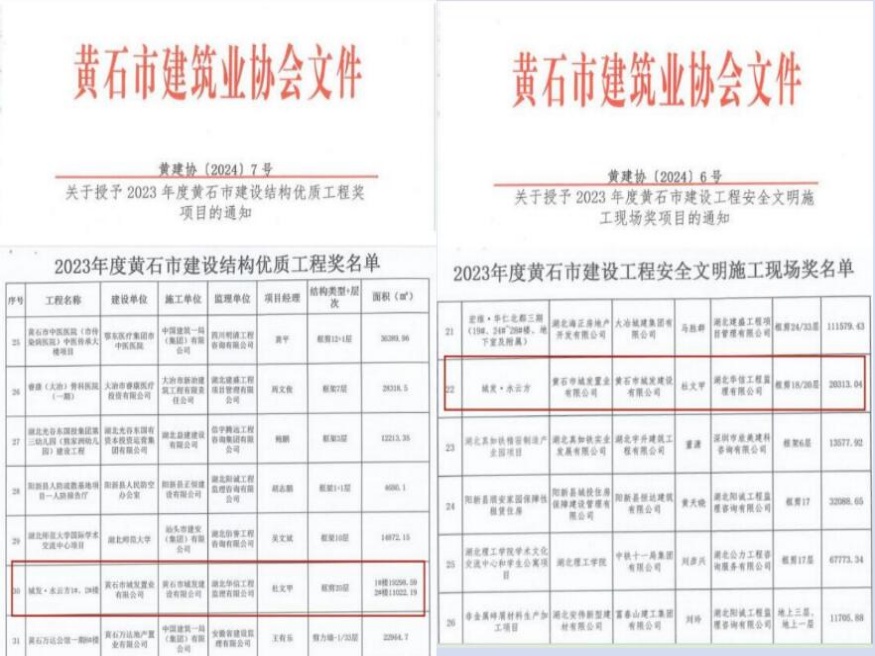 近日,由黃石市城發(fā)建設(shè)有限公司承建的城發(fā)·水云方項(xiàng)目榮獲黃石市2023年度建設(shè)工程安全文明施工現(xiàn)場和結(jié)構(gòu)優(yōu)質(zhì)工程獎(jiǎng)。